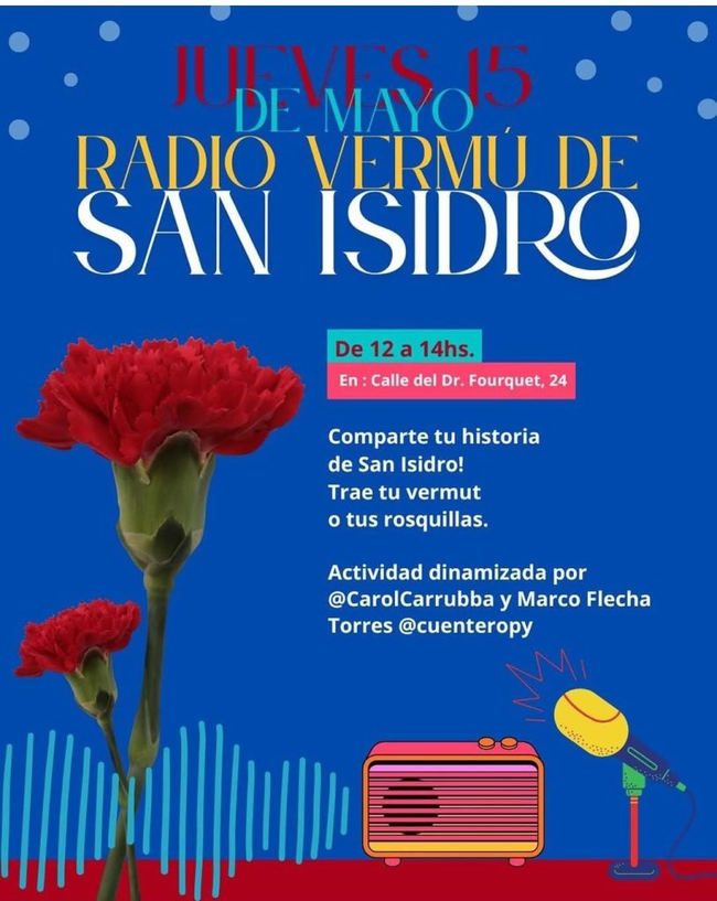 También desde el mediodía y hasta las 14 horas en Esta es una plaza se celebrará un radio-vermú «colectivo y autogestionado», en el que los asistentes están llamados a compartir vermú y rosquillas con sus vecinos y a contar las respectivas historias de San Isidro que hayan podido vivir.