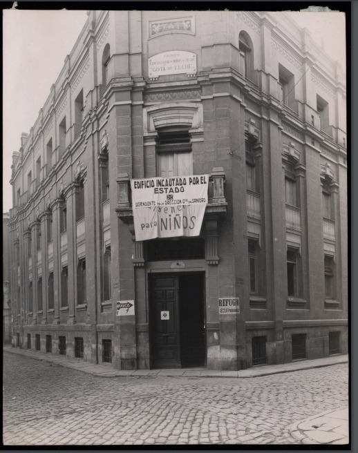 Una de ellas alcanzó de pleno al edificio del número 9 de la calle Espada provocando una matanza entre quienes hacían cola delante de lo que por aquel entonces era La Gota de Leche, una institución municipal benéfica que brindaba atención sanitaria a madres de lactantes y proporcionaba gratuitamente leche esterilizada y sueros.