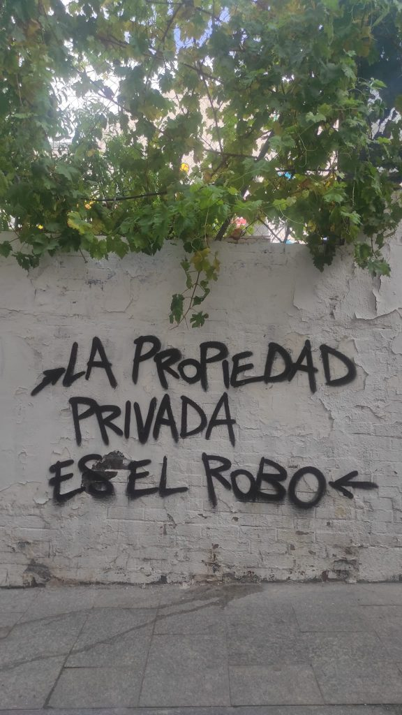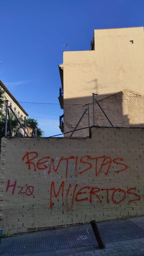 La madrugada previa a la concurrida manifestación que el pasado sábado recorrió durante más de dos horas Lavapiés bajo el lema ‘Lavapiés al límite. Contra la destrucción de los barrios’, aparecieron numerosas pintadas en distintas calles denunciando desde la proliferación de vut a la turistificación de la zona o el rentismo, entre otros asuntos, y declarando el barrio en lucha.