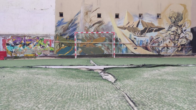 El deteriorado firme de la pista deportiva del solar municipal de Embajadores 18 está siendo renovado gracias a la generosidad de Opsa, empresa dedicada a la colocación de césped artificial que, a petición de los responsables del club Dragones de Lavapiés, ha accedido a arreglar, totalmente gratis, el pequeño campo que no sólo se había convertido en un espacio no apto para la práctica del fútbol sino que, incluso, resultaba peligroso para la integridad física de las decenas de personas, niños y niñas en su mayoría, que seguían disfrutando en él de su deporte favorito.