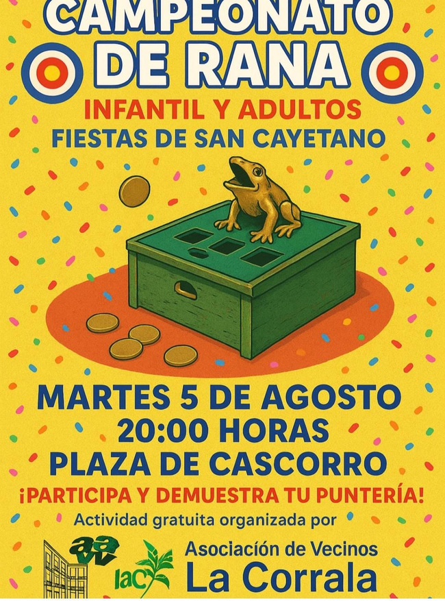20.00 h – Campeonato de rana (infantil y adultos). Plaza Cascorro.