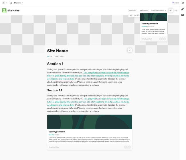 Look up the Sub-Documents of a Document in the Site, and present them as as cards or within the Navigation View of the document. Contains the following: