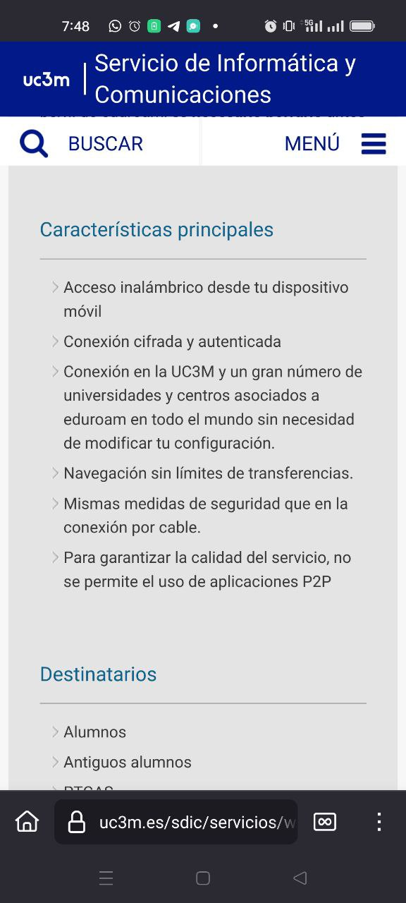 Screenshot from UC3M a University in Madrid: