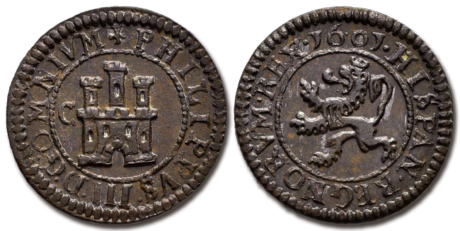 Maravedí de 1601 pre orden de 1602 de Felipe III