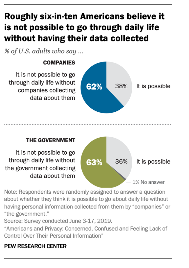 The rapid evolution of technology has resulted in it becoming an essential part of everyday life. However, there is a growing concern over privacy and surveillance. For example, a 2019 survey conducted by Pew found that most Americans believe that they cannot go through daily life without their data being collected by either companies or the government.
