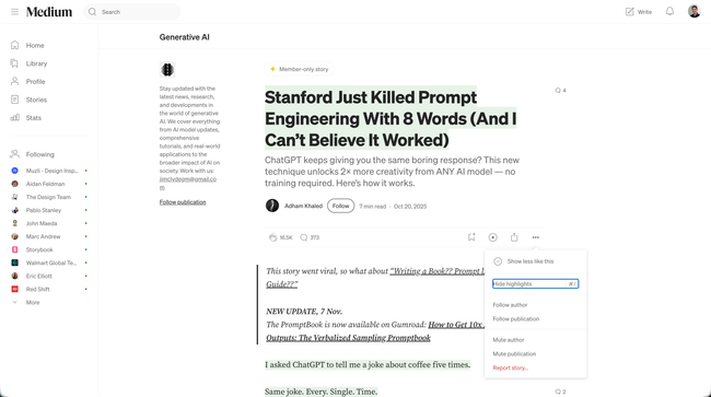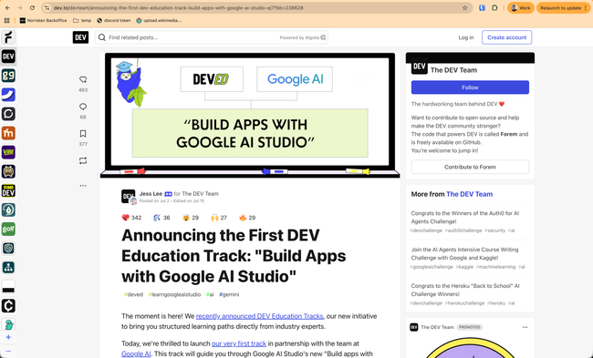 The difference from dev.to is that they hide the bars when the user scrolls. which is what we do now for the site header. This is cleaner IMHO. The interactions with the buttons are different here: the clap just changes state, the comments open a new panel on top and the bookmark opens a popover.