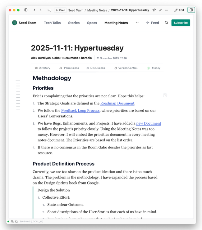 We want users to understand how the system works quickly, at a glance. Our documents are the most essential element in our system, and we have distilled their behaviour over the past 5 years. Users need to understand: directories, permissions, discussions, version control, and money —five things—all of them, at once. I am always stressed because they won't understand five things, but I believe they will!