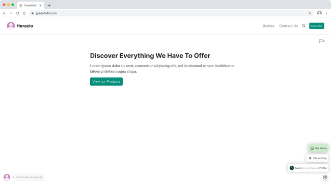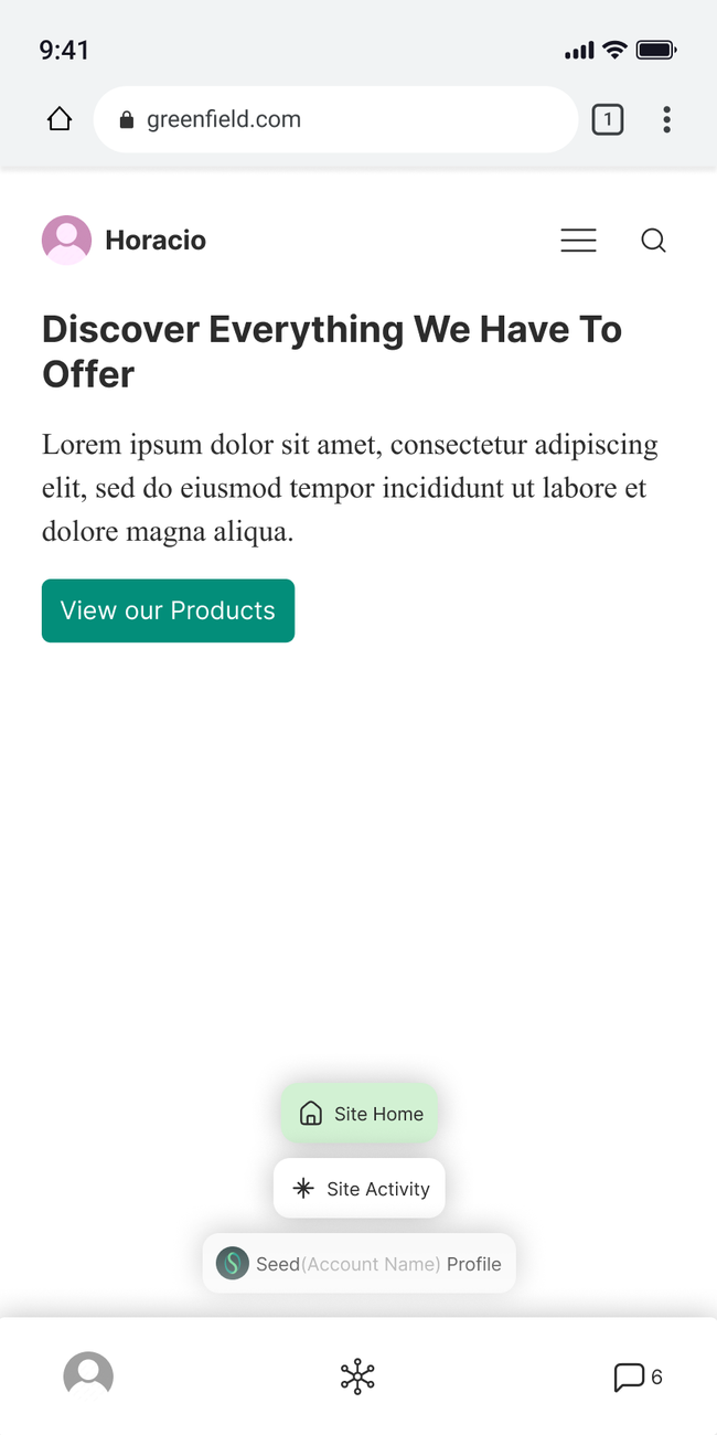 From here the user can easily navigate to the owner of the site's profile or feed, liberating the space form the the site navigation.