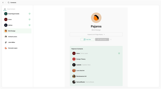 The profile view will be contained in the contacts page. Here users can navigate though the profile which will contain account activity, collaborator list, members list (authors and commentors) and any other relevant information.