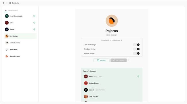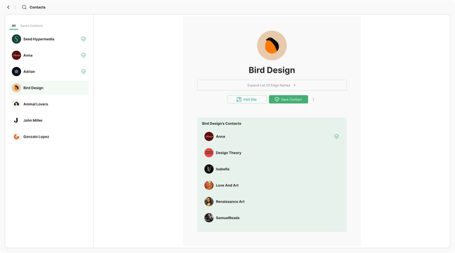 Additionally as contact will be contained in the contacts page, this one will show the contacts listed and when opened they will display the profile on full screen allowing users to use the bottom tabs once again to navigate back to the identities other views.