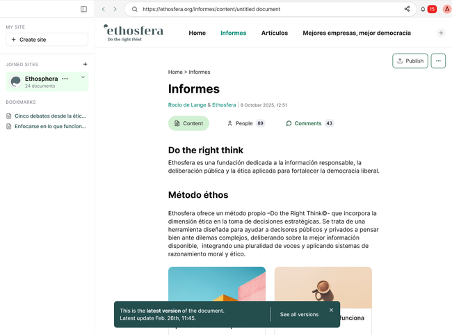 When returning to a document, users are frequently caught in a versioning bug that disrupts the experience. The expected behaviour is straightforward: always show the latest version of the document, but surface a non-intrusive notification when changes were made by someone else — giving the user awareness without blocking their flow.