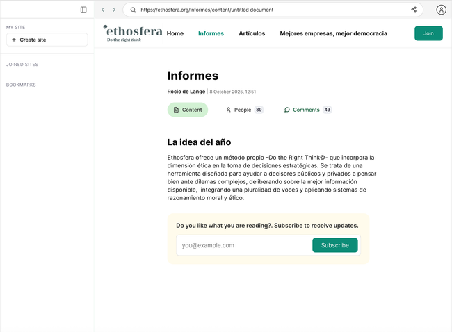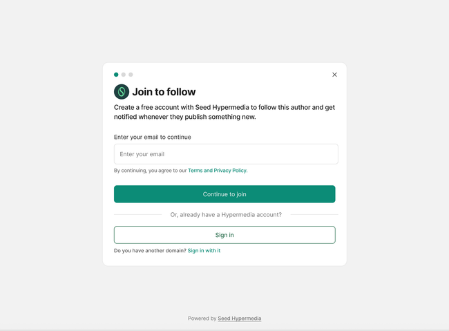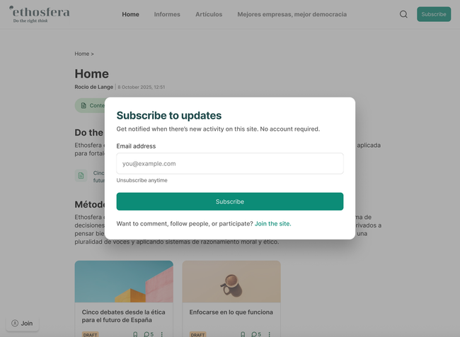 1.2. User reads and wants to subscribe. A window opens to add email and an option to join site instead.