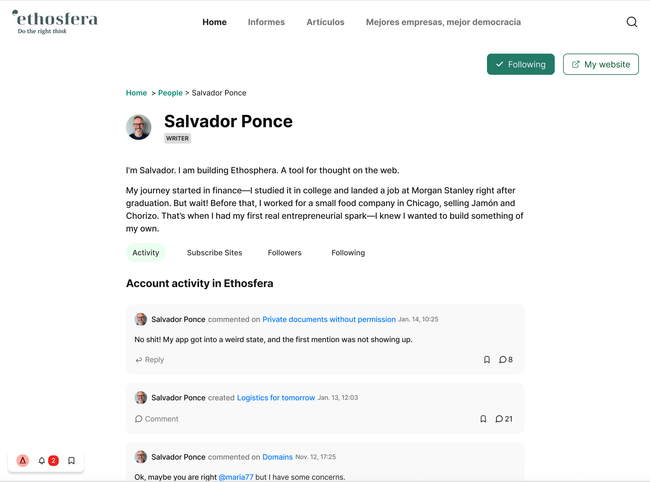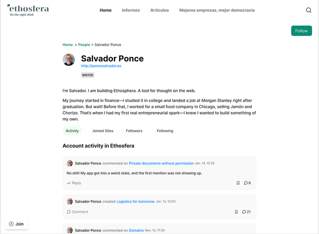 2. Follow a member of a site