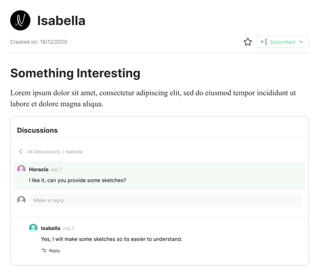 This is how it would look to reply on the block. The purpose is to keep the interaction as similar as it the one on the side panel.
