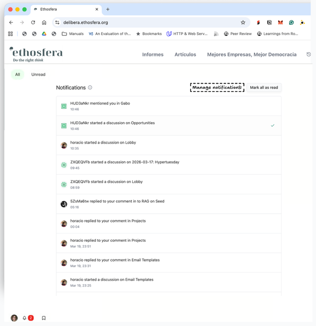 The subscribe button disappears, and the bottom menu shows up with the Profile Avatar and the notifications icon. Notifications are filtered to the Site Notifications. We focused on target comments for now.