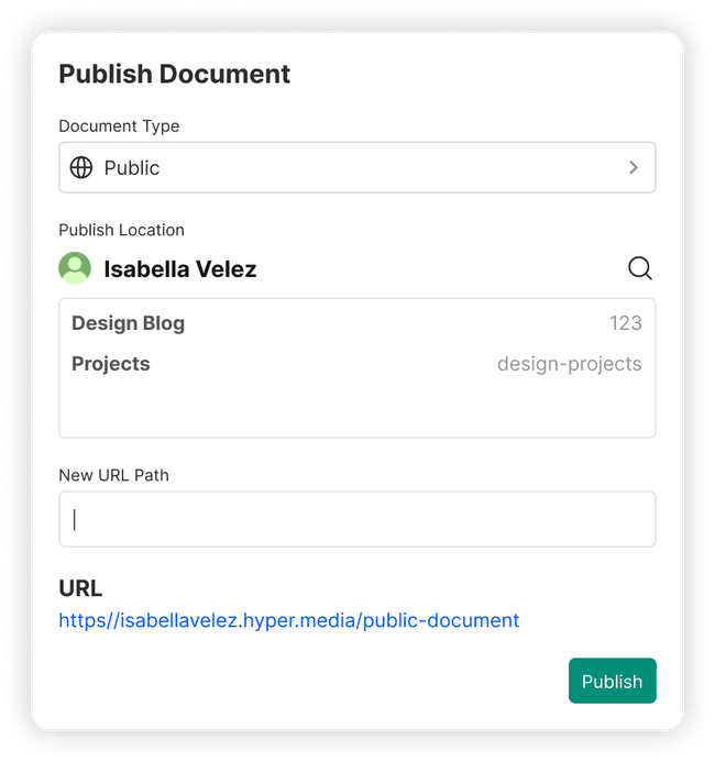 As an Author, I want to publish a Private Document that is only visible and editable to the collaborators of its Home Document.