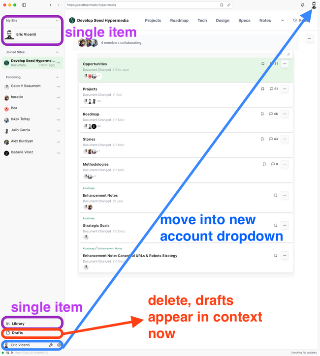 For now, I think we should just move this to the top of the sidebar, above or below "my site"