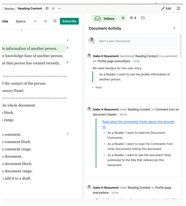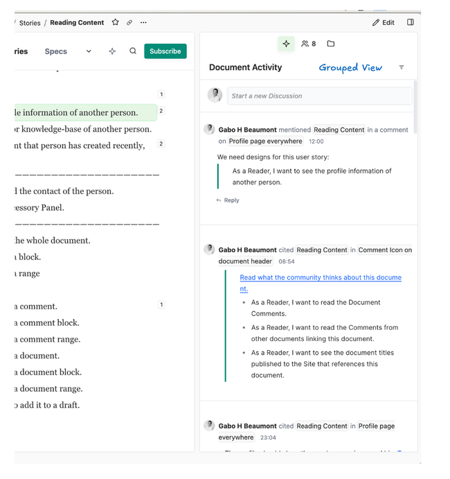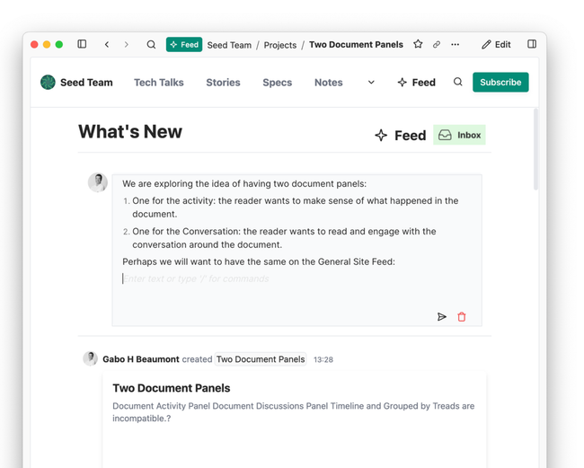 We can have both views: Discussions and Activity Views on the Document Panel, but also on the General Feed Panel.