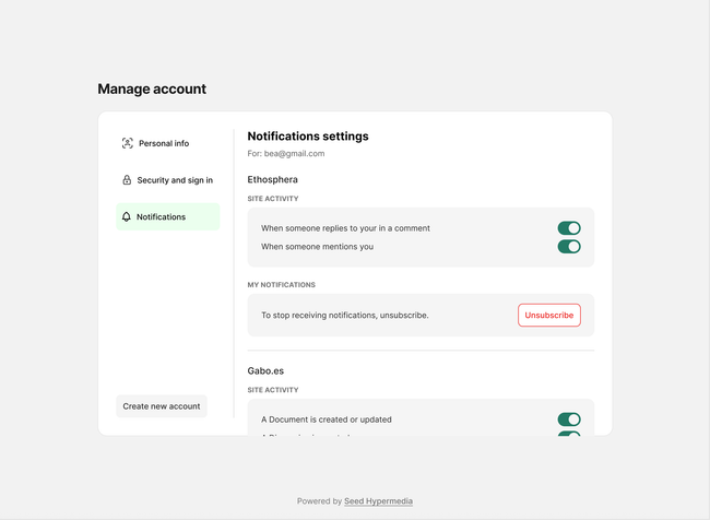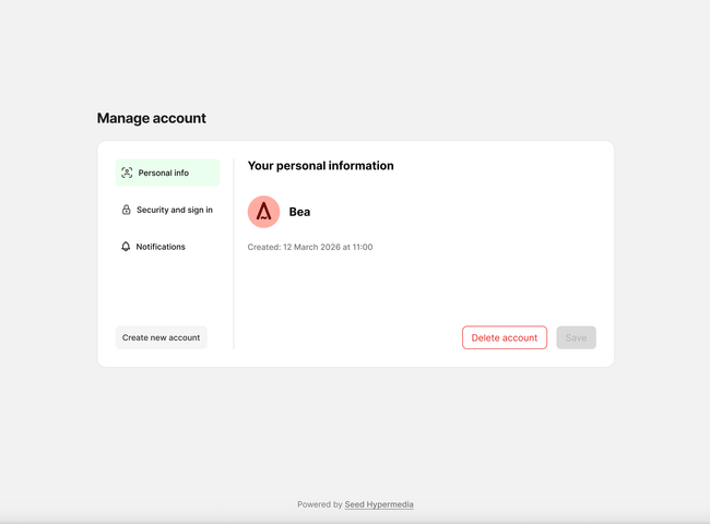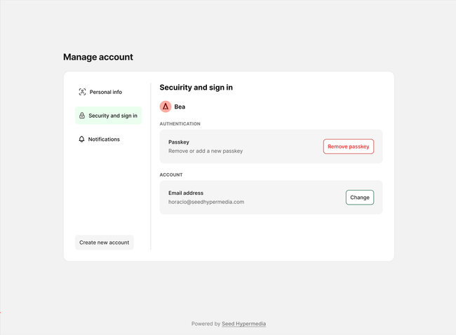 6.1 User clicks the profile icon. A modal with options open and there is one called "manage account". When user clicks opens the Vault screen on a new screen.