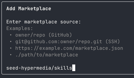 Enter the marketplace source seed-hypermedia/skills:
