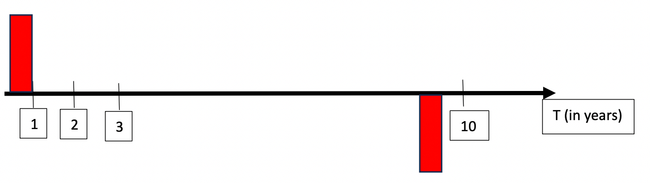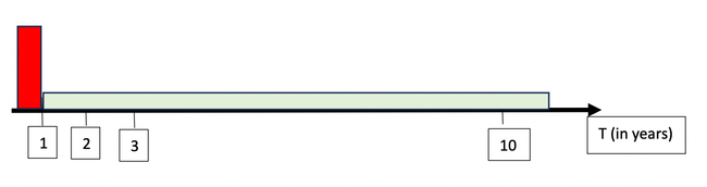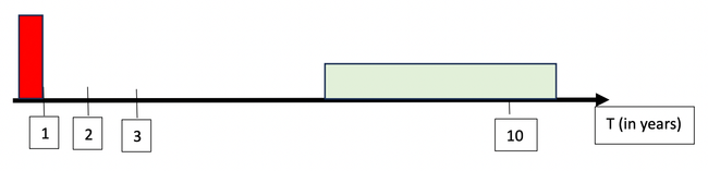 Figure 3: Productivity effect appearing after a significant time lag relative to the wealth effect