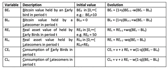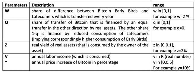 Table 1: Key parameters of the example for the distributional effects of Bitcoin